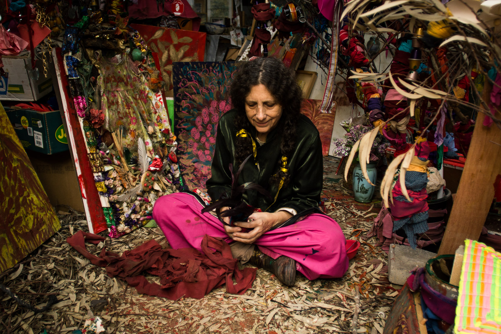 In 2008, Yacoby presented a permanent exhibition titled Art and Creation Center: The Woman of the Thousand Voices. In its center, she placed a powerful installation that offered a spiritual journey of healing and empowerment, including a transition from the “Land of the Dead” to the “Forest of Life.” It suggests a bridge of reconciliation and a prayer for peace through encounters of individuals and nations, as well a personal process of transformation and growth. Since its opening, the Center has served as an educational and cultural arts hub (with the support of Mifal HaPayis, Israel’s national lottery), and as a venue for intercultural encounters and development and empowerment workshops for visitors from Israel or other countries.